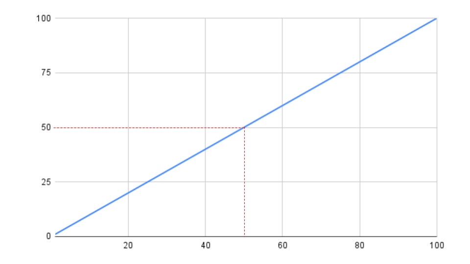 To understand inequality, let’s start with a simple graph: imagine plotting population on the x-axis and wealth on the y-axis.